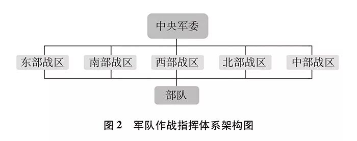 建立健全联合作战指挥体制。健全军委联合作战指挥机构,组建战区联合作战指挥机构,形成平战一体、常态运行、专司主营、精干高效的联合作战指挥体系。撤销沈阳、北京、兰州、济南、南京、广州、成都7个大军区,成立东部、南部、西部、北部、中部5个战区。通过改革,构建起“中央军委-战区-部队”的作战指挥体系。