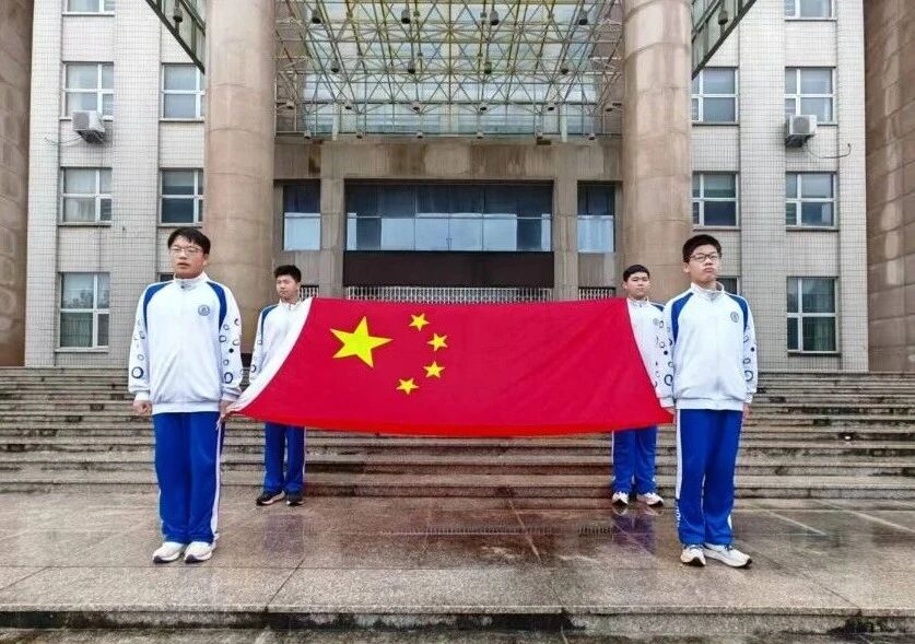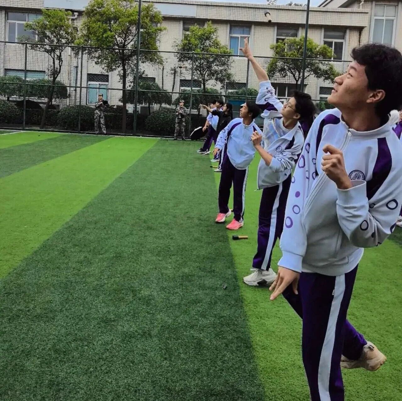 活动在庄严的仪式中拉开帷幕——全体学子列队肃立,面向国旗齐唱国歌,嘹亮的歌声穿透雨幕,尽显少年赤诚;随后,学子们高举右拳庄严宣誓,“强国有我,护国有我”的誓言铿锵有力,将国防责任深深镌刻在心中,为整场实践活动奠定了庄重而坚定的基调。